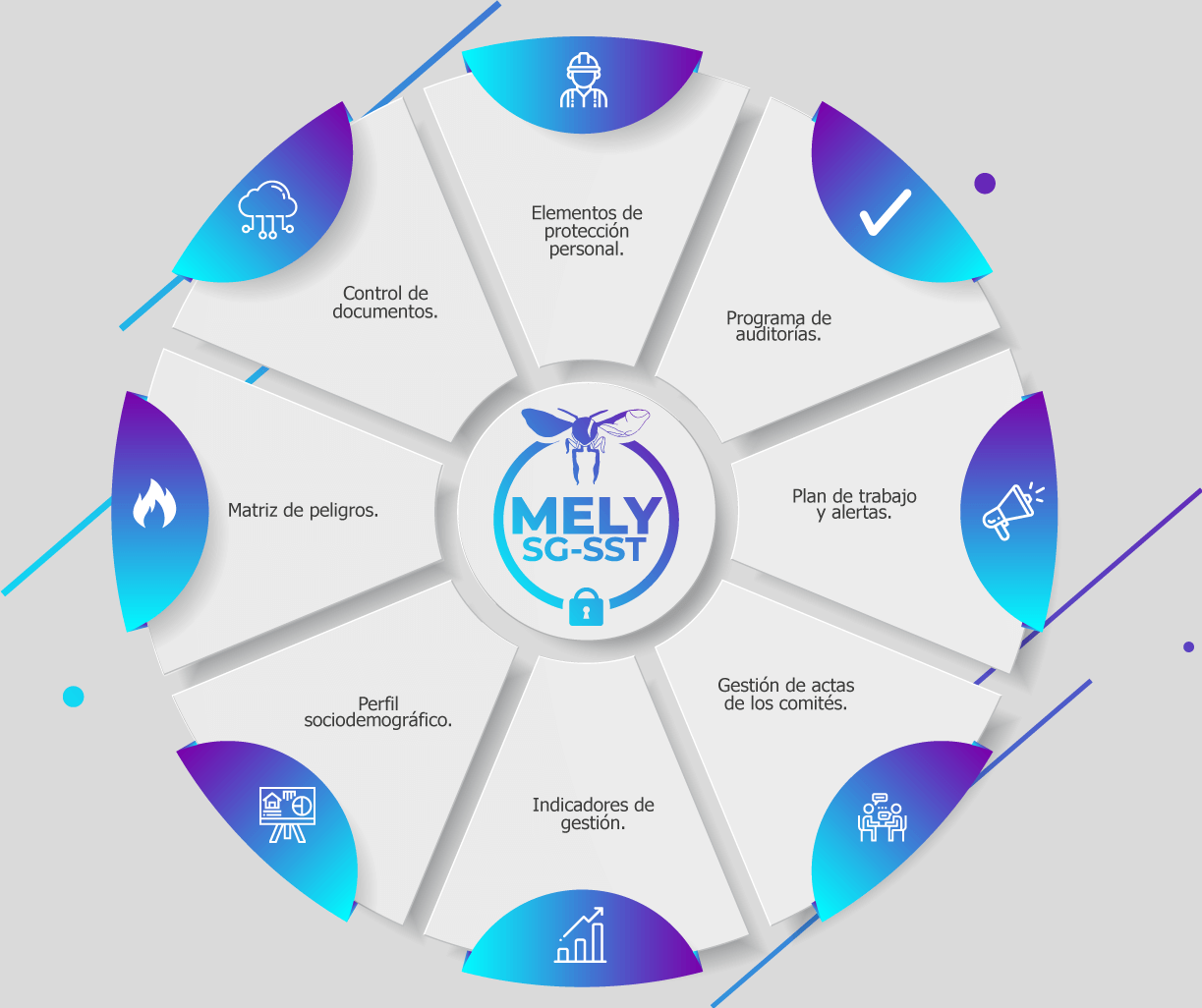 Somos una solución informática utilizada para administrar el Sistema de Gestión de la Seguridad y Salud en el Trabajo.